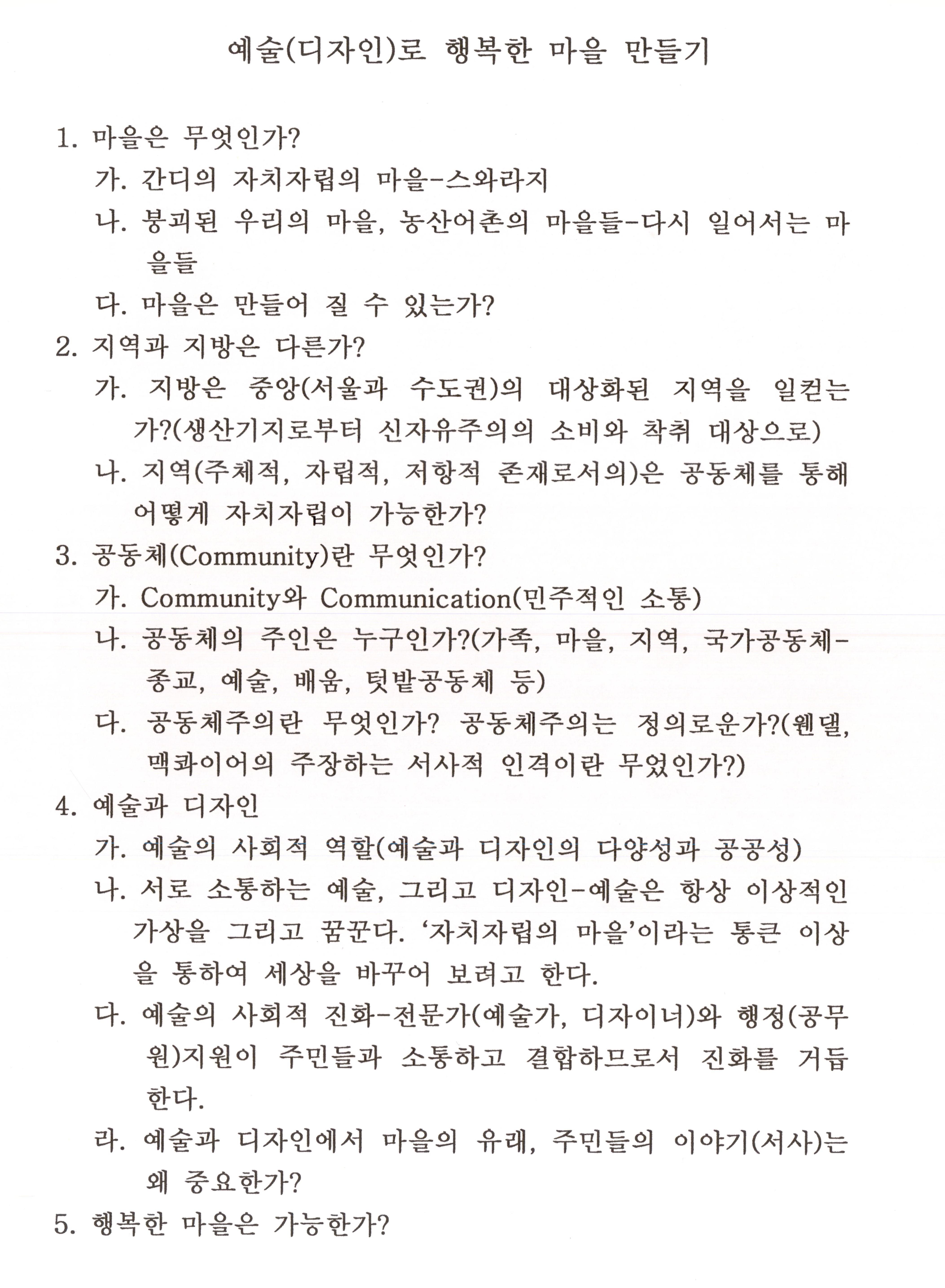 MA-02-00004783 「예술(디자인)로 행복한 마을 만들기」, 「'예술과 마을 네트워크'를 제안하며」 원고