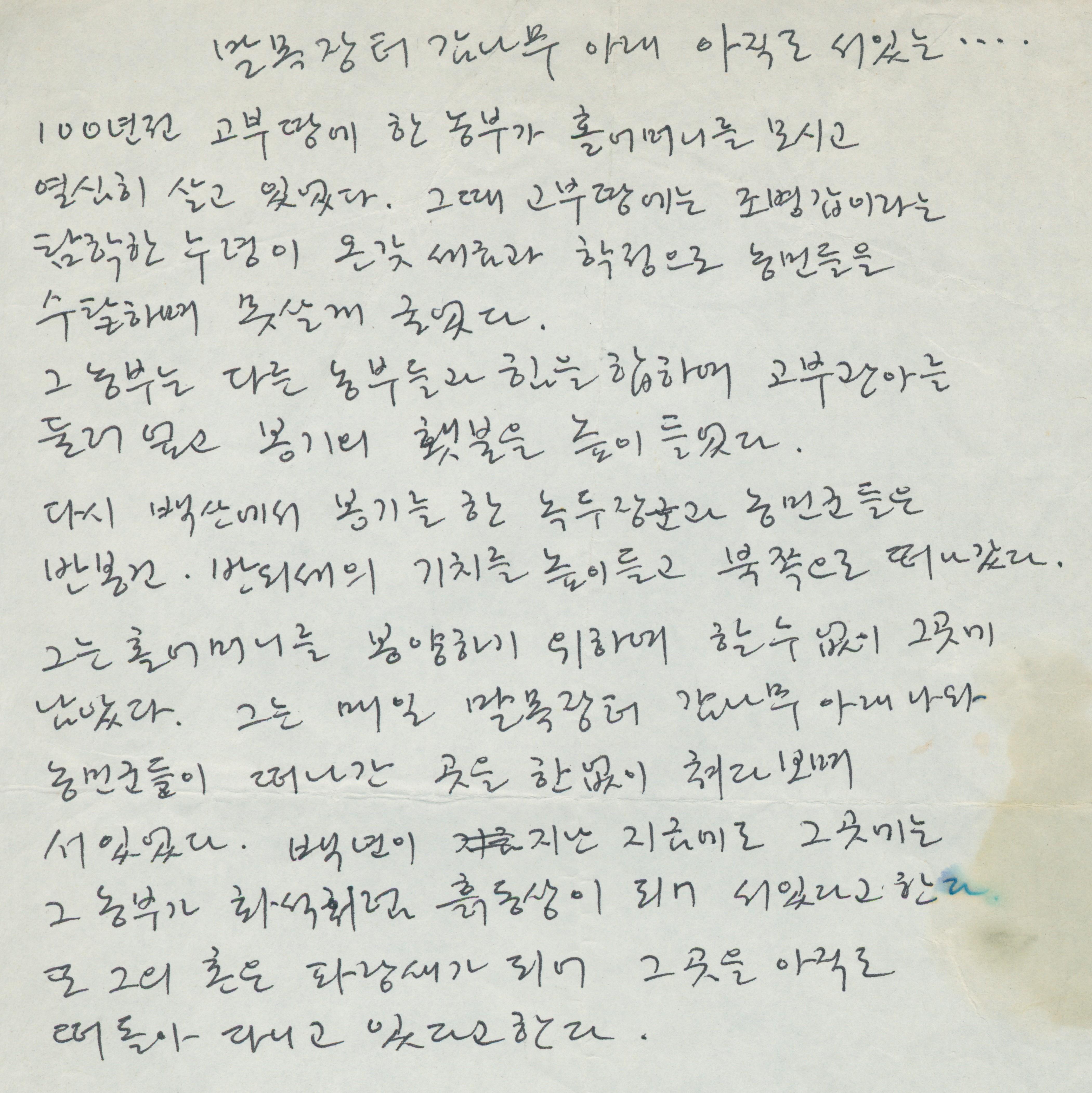 MA-02-00005325 ≪동학혁명 100주년 기념 전시회≫ 조직위원회 '말목장터 아래 아직도 서있는……' 메모